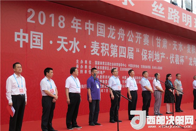 9時(shí)整,2018中國(guó)龍舟公開(kāi)賽(天水麥積站)暨保利地產(chǎn)“伏羲杯”第四季龍舟大賽正式拉開(kāi)序幕,來(lái)自全國(guó)及甘肅省的近25家代表隊(duì)展開(kāi)激烈角逐。中國(guó)龍舟協(xié)會(huì)副主席劉北劍,天水市人大常委會(huì)主任、市委秘書(shū)長(zhǎng)蔣曉強(qiáng),天水市人大常委會(huì)原主任、市關(guān)工委主任李世榮,市委常委、常務(wù)副市長(zhǎng)趙四輩,市委常委、宣傳部部長(zhǎng)張建杰,市人大常委會(huì)副主任張克強(qiáng),副市長(zhǎng)、市公安局局長(zhǎng)馬瑛,市政協(xié)副主席屈光平,市政協(xié)副主席、麥積區(qū)委書(shū)記張智明,國(guó)家體育總局社會(huì)體育指導(dǎo)中心二部主任、國(guó)際龍舟協(xié)會(huì)副秘書(shū)長(zhǎng)、亞洲和中國(guó)龍舟協(xié)會(huì)秘書(shū)長(zhǎng)余漢橋,省體育局群眾體育處處長(zhǎng)武志峰,市人大常委會(huì)秘書(shū)長(zhǎng)楊坤,市政府副秘書(shū)長(zhǎng)、外事僑務(wù)辦主任張有信,麥積區(qū)人大常委會(huì)主任賈應(yīng)珍等出席開(kāi)幕式,并為龍舟點(diǎn)睛。