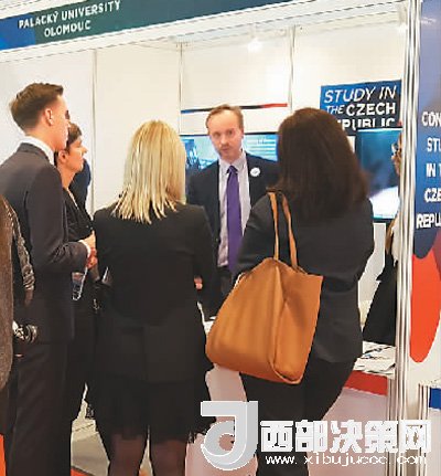 2017中國國際教育展(北京)上,近20所捷克高校及中學(xué)組成的捷克展團亮相。圖為捷克某大學(xué)展臺。