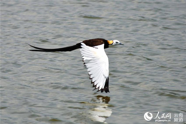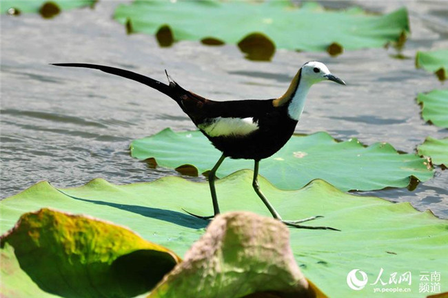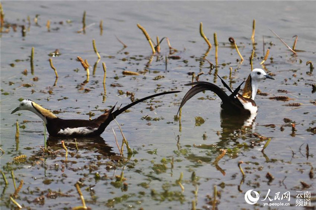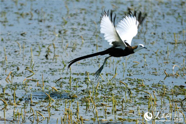長(zhǎng)尾水雉現(xiàn)身云南異龍湖濕地孔賓攝