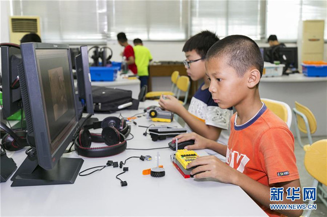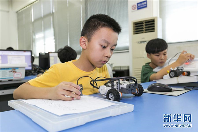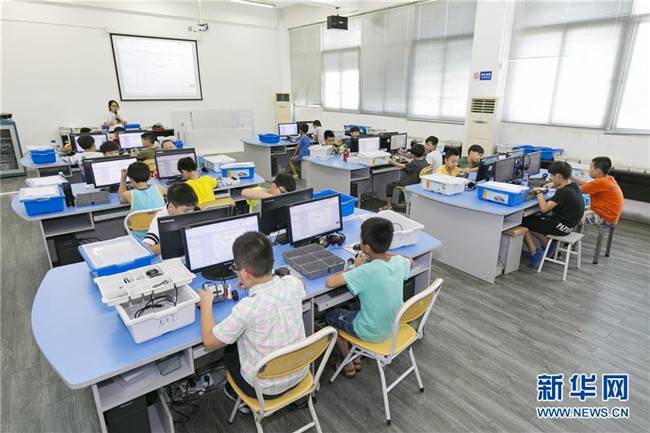 暑假期間,福建省晉江市舉辦青少年科普公益課堂,增強(qiáng)青少年的創(chuàng)新意識,豐富學(xué)生們的假期生活。 新華社發(fā)(賴進(jìn)財(cái) 攝)
