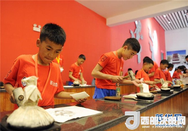 7月24日,牦牛坪小學學生在大明宮考古探索中心體驗拓片技藝。