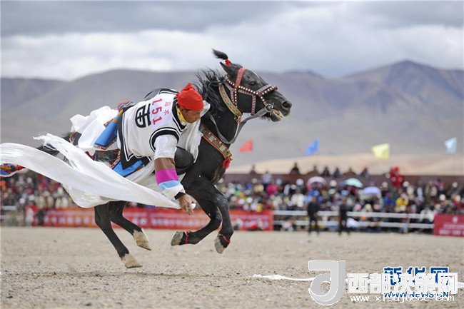 當日,西藏阿里地區(qū)在獅泉河鎮(zhèn)舉行賽馬競技大賽,比賽項目有騎馬拾哈達、撿茶磚、騎馬射箭、馬術表演等,共有150名農牧民選手參加比賽,吸引了2萬余名觀眾前來觀看。新華社記者張汝鋒攝