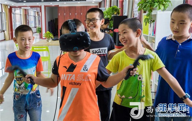 8月7日,呼和浩特市玉泉區(qū)觀音廟社區(qū)孩子們?cè)隗w驗(yàn)VR虛擬現(xiàn)實(shí)設(shè)備。