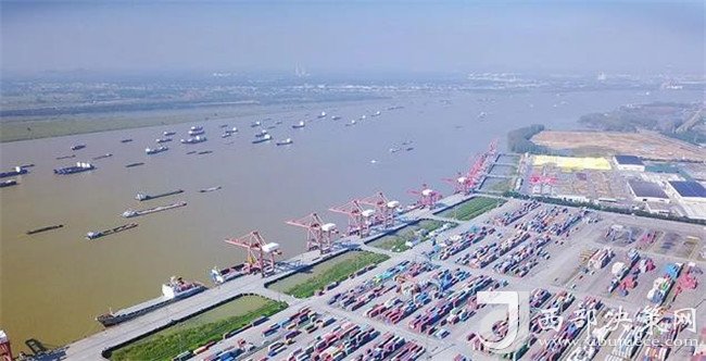 航拍長(zhǎng)江上貨船往來(lái),碼頭上集裝箱擺放有序(來(lái)源:新華網(wǎng))