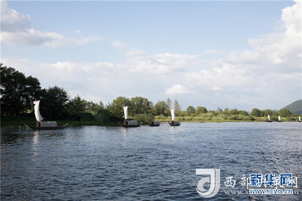 8月15日拍攝的停泊在麗水市蓮都古堰畫鄉(xiāng)小鎮(zhèn)甌江上的舴艋舟。