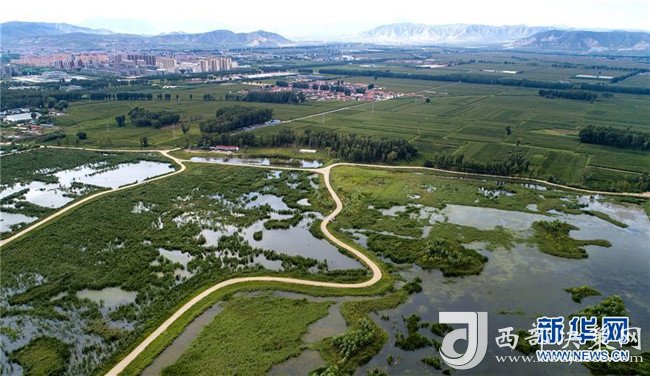 8月22日無人機(jī)拍攝的廣靈縣壺流河濕地。新華社記者 陶明 攝