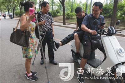 昨日,新生江楠拄拐行走太久手部酸痛,坐上老師的車(chē)。