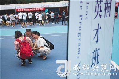 昨日,新生及其家長(zhǎng)在丘成桐數(shù)學(xué)英才班報(bào)到處附近休息。