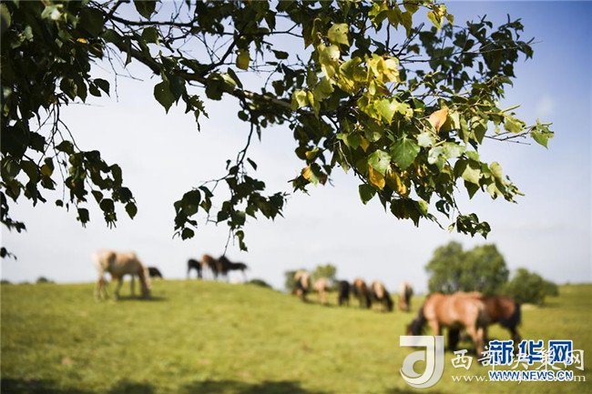 9月1日,馬群在內(nèi)蒙古烏蘭布統(tǒng)草原上吃草。