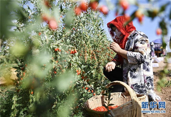 農(nóng)民在寧夏吳忠市同心縣潤(rùn)德莊園枸杞基地采摘枸杞(6月22日攝)。地處西北內(nèi)陸的寧夏,既有高山大漠的雄渾,又有“塞上江南”的溫婉,自然造化之美自古入詩(shī)入畫。自治區(qū)成立60年里,尤其是黨的十八大以來,這片熱土上的人民用勤勞和智慧,發(fā)展特色農(nóng)業(yè)、建設(shè)美麗鄉(xiāng)村、樹立文明鄉(xiāng)風(fēng),繪就一幅全新、壯美的鄉(xiāng)村振興新畫卷。新華社記者王鵬攝