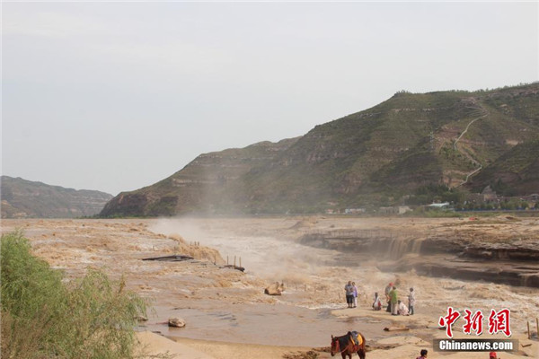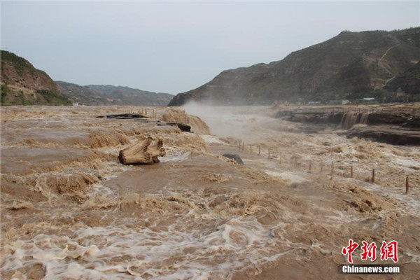 近日,黃河壺口瀑布水量大增,湍急的水流攜帶大量的泥沙奔涌而下,主瀑布幾乎沒有落差,出現(xiàn)“水岸齊平”的景象。 阿琳娜 攝
