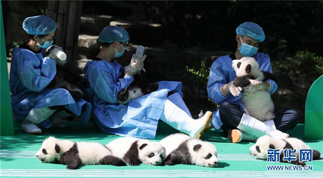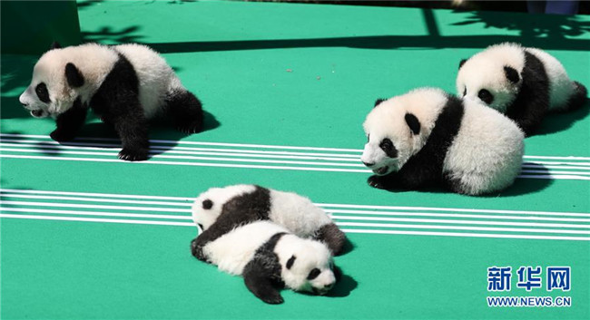 這是9月28日在成都大熊貓繁育研究基地太陽產(chǎn)房拍攝的大熊貓寶寶。 當(dāng)日,成都大熊貓繁育研究基地為2018年出生的12只新生大熊貓寶寶舉行了一場別開生面的亮相活動。