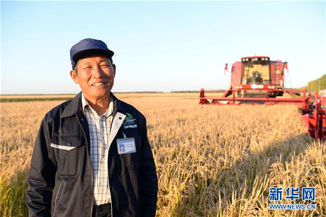 黑龍江建三江七星農(nóng)場(chǎng)職工秦泗利介紹自己工作40年來見證“北大荒”到“北大倉”的發(fā)展歷程(9月26日攝)。新華社記者王凱攝