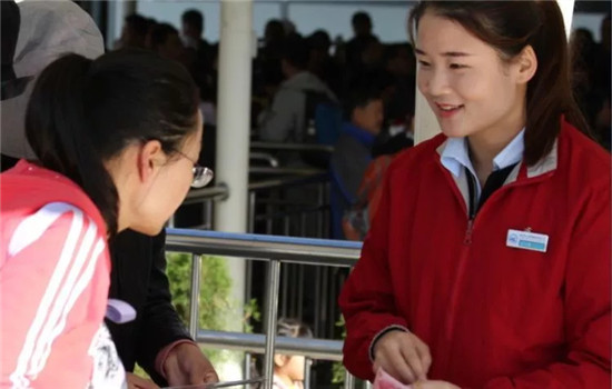 負責(zé)售票、檢票的工作人員認真的核對游客相關(guān)信息,時刻要求自己做到細致嚴謹更快速,一天下來,他們幾乎忙得連喝水的時間都沒有,但是他們時刻保持微笑,讓每位游客感受到“服務(wù)至誠”的感覺。