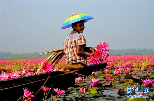 10月7日,在孟加拉國(guó)巴里薩爾地區(qū),一名兒童在采摘睡蓮。 近日,孟加拉國(guó)巴里薩爾地區(qū)的睡蓮進(jìn)入盛開(kāi)時(shí)節(jié)。 新華社發(fā)(薩利姆·禮薩 攝)