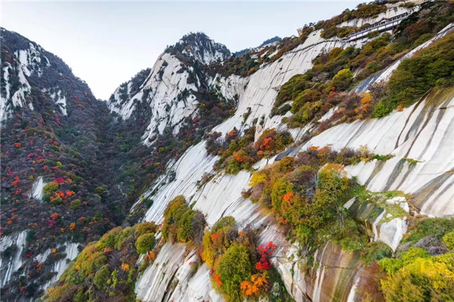 千尺幢、百尺峽、老君犁溝,這些華山著名的景點,在不同角度、不同時刻都展示著不一樣的紅葉流動。
