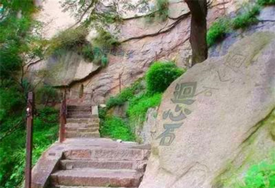韓愈投書處:從北峰上行,過擦耳崖,爬天梯,就到了蒼龍嶺,這處地方就像它的名字一樣,仿佛是一條蒼龍用它的背脊架起了這條路,路面極之狹窄,若有人迎面擦肩而過,最好大家互相背靠背遷就一下,免生危險。蒼龍嶺的山脊上下高差約五百米,山坡傾斜度達45度,兩旁山谷,深不可測,據(jù)說唐代韓愈當年上山到了此地,見山高勢險,以為自己必死無疑,于是寫下遺書,投往山下,所以大家會發(fā)現(xiàn)路旁一塊巨石之上,寫有“韓愈投書處”的字樣。