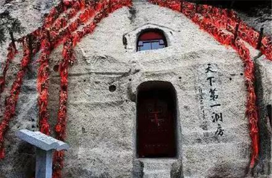 蓮花洞:相傳在華山修行的吹簫人簫史和秦穆公的女兒弄玉在雙雙駕鶴成仙之前,曾到西峰蓮花洞點燭成婚,為姻緣而起的“天下第一洞房”便由此而來。