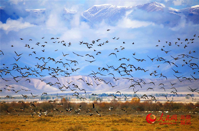伊犁河谷獨特的河谷地形和豐富的伊犁河水系,使這里成為一塊豐饒的“濕島”,為各種鳥類提供了豐富的食物。而昭蘇縣作為鳥類遷徙的重要通道之一,每年秋天有近50萬只候鳥通過這里遷徙。(李文武 李忠銘)