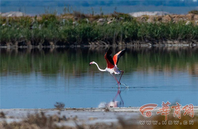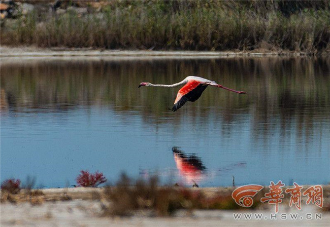近日,榆林市攝影愛(ài)好者楊繼焱在定邊縣茍池觀察鳥(niǎo)情時(shí)發(fā)現(xiàn)1只鳥(niǎo),經(jīng)確認(rèn)為火烈鳥(niǎo)。