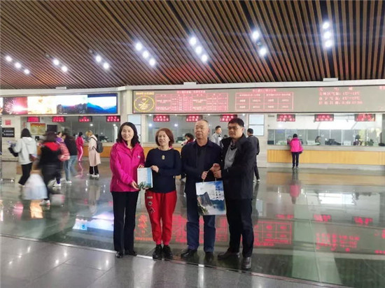 為此,票務(wù)中心根據(jù)集團(tuán)公司領(lǐng)導(dǎo)安排,組織了向第3000001位幸運(yùn)游客代表劉姓游客贈(zèng)送華山旅游紀(jì)念品的活動(dòng),活動(dòng)現(xiàn)場(chǎng)票務(wù)中心主任李泉向該名游客贈(zèng)送了代表華山四季美景的集郵冊(cè)一套和《華山楹聯(lián)》書籍一本,劉姓游客非常高興,表示華山景美,人更美,下次還會(huì)帶親朋好友游覽。