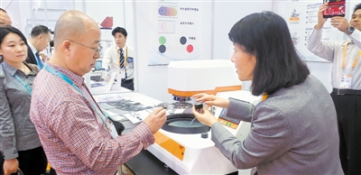 寧夏金海逸環(huán)保設備工程有限公司總經(jīng)理呂忱對智能及高端智能裝備制造展區(qū)興趣濃厚。