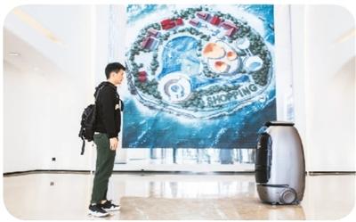 在阿里的未來酒店里,機(jī)器人正在服務(wù)客人。