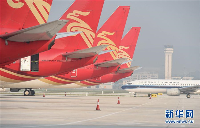 飛機(jī)停在廣西南寧吳圩機(jī)場(2014年9月25日攝)。