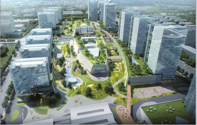 南京國(guó)家農(nóng)創(chuàng)園鳥瞰效果圖。
