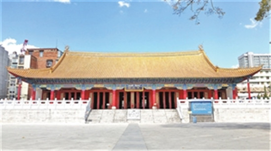 經(jīng)過一年半的施工,昆明文廟恢復(fù)性修建項目一期工程于去年7月完工。此次修復(fù),昆明市規(guī)劃局及相關(guān)部門以歷史文獻和老照片為主要修復(fù)依據(jù),并結(jié)合明清時期地方城市廟學(xué)建筑的基本規(guī)制,以及現(xiàn)有建筑遺存,對清代云南府學(xué)進行復(fù)原研究設(shè)計。提出修復(fù)設(shè)計思路將保留云南府學(xué)中路的欞星門與泮池,恢復(fù)中軸線上的大成門、大成殿與啟圣祠,以及相關(guān)配殿,如祭器庫、樂器庫,東西廡等。并對府學(xué)的東路改造,保留桂香樓與明倫堂兩座建筑,穿插設(shè)置園林小品建筑,形成數(shù)座各有特點的小型古典園林,增加建筑群的文化與休閑氛圍,并將東路與西路建筑結(jié)合成為有機整體。在重新開放的文廟里,市民能發(fā)現(xiàn)從地下挖出的柱礎(chǔ)基石支撐起大成殿新建立柱;能從在地下沉睡了上百年的石碑上讀到更多關(guān)于文廟的歷史。至此,昆明祭孔、尊孔,傳承弘揚優(yōu)秀傳統(tǒng)文化再添一處重要場所。