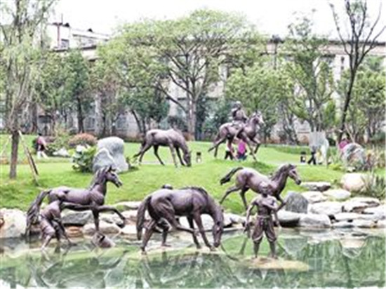 今年6月30日,《翠湖周邊歷史文化片區(qū)整治提升規(guī)劃》中的翠湖洗馬河水系恢復(fù)及帶狀公園對外開放,消失許久的“柳營洗馬”景觀重現(xiàn)翠湖邊,蜿蜒的河道從兩岸柳蔭下穿過,無論是具有明清歷史特色的兵馬奔騰的青銅雕塑,還是古樸典雅的活字印刷,抑或是獨特的噴泉造型,無不重現(xiàn)了600多年前沐英“柳營春試馬、虎帳夜談兵”的歷史文化,吸引著過往市民和游客,被稱為“昆明之眼”的翠湖,因其更具亮色。