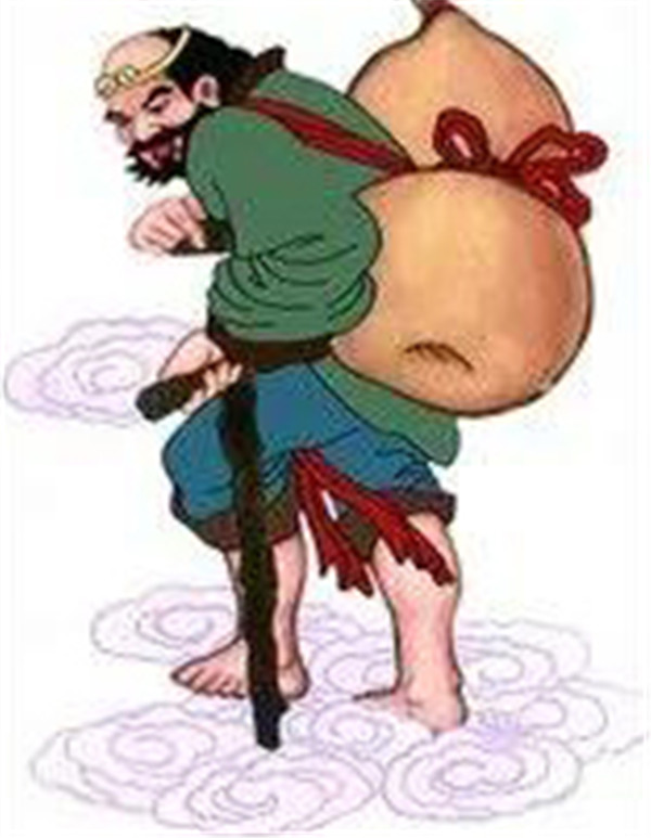 鐵拐李是民間傳說中的八仙之首——藥王。魯迅先生的《中國小說史略》中說他姓李,名玄。據(jù)說他他是唐玄宗開元至代宗大歷之間人,相貌清秀,舉止瀟灑、不圖名利,學道于終南山。某一天他看到《山海經》上有一段記述:“可以精思作合神藥者華山、霍山、恒山、嵩山…"于是就從終南山跑到華山來修煉了。當他見到老君煉丹的爐灶后,非常高興。心想,老君是我李家先祖,我何不用祖先遺物,在此煉些仙丹呢?