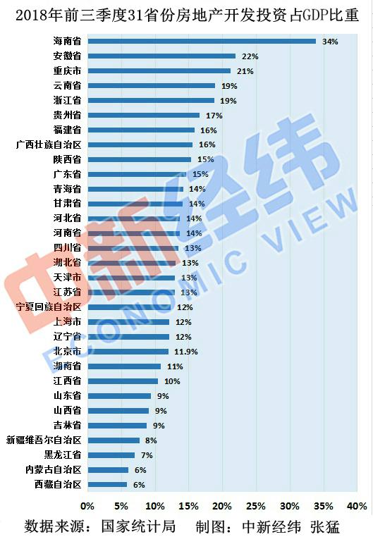 中新經(jīng)緯客戶端(微信公眾號(hào):jwview)梳理發(fā)現(xiàn),2017年前三季度31省份“房地產(chǎn)開發(fā)投資占GDP比重”前三名與今年相同,也是海南、安徽、重慶。易居研究院智庫(kù)中心研究總監(jiān)嚴(yán)躍進(jìn)認(rèn)為,海南、安徽、重慶占比高與此三省的招商力度大有關(guān)系,也和具體的產(chǎn)業(yè)導(dǎo)入有關(guān)。