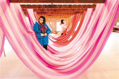 2018年以來,河北省衡水市冀州區(qū)依托當(dāng)?shù)氐氖〖?jí)非遺田園棉手織粗布技藝資源,采取“非遺+扶貧”的模式,通過非遺傳承人開展技能培訓(xùn)、老師傅傳幫帶等,讓村民在傳承非遺文化的同時(shí)學(xué)習(xí)傳統(tǒng)技藝,助力脫貧致富。圖為12月25日,衡水市冀州區(qū)一家老粗布生產(chǎn)企業(yè)的工人在檢測布料干濕度。