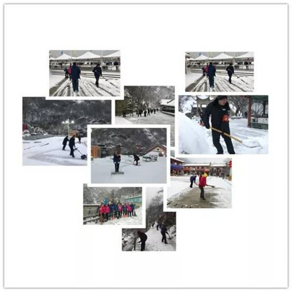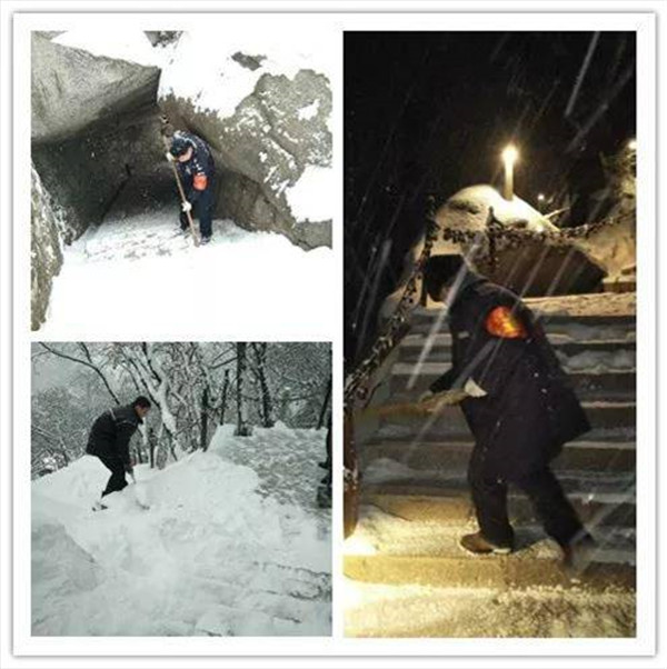2月9日晚,一場(chǎng)大雪突降華山景區(qū),當(dāng)工作人員與游客一起沉浸在新年的喜悅氛圍時(shí),華山景區(qū)悄然鋪上了一層厚厚的積雪。2月10日早6時(shí),華旅集團(tuán)通過(guò)多渠道號(hào)召全體員工在各自崗位迅速開(kāi)展掃雪除冰工作。雪情就是命令,來(lái)不及欣賞新年首場(chǎng)雪景,廣大員工扛起掃把鐵鍬等掃雪工具,第一時(shí)間奔赴“戰(zhàn)場(chǎng)”,全力確保景區(qū)恢復(fù)運(yùn)營(yíng)。