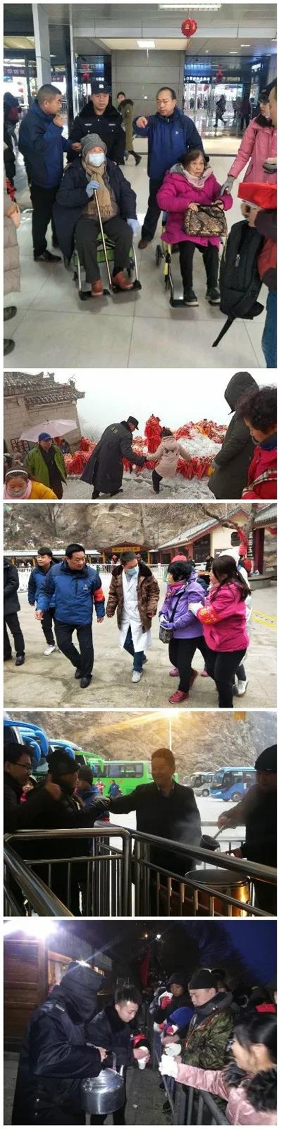 “游客為本、服務(wù)至誠”是華旅集團(tuán)始終如一的服務(wù)準(zhǔn)則,為了讓廣大游客在華山景區(qū)過一個暖心年,集團(tuán)在景區(qū)營造了歡樂祥和的春節(jié)氛圍,2月5日(正月初一),在游客中心開展了“同筑華山夢 共度中國年”新春賀年活動,讓游客感受到濃濃的新春年味;主峰區(qū)各經(jīng)營飯店還向游客提供了餃子等節(jié)日特色食品,帶給游客家的溫暖;同時,景區(qū)員工統(tǒng)一著工裝,佩戴袖標(biāo),在游客主要集散地設(shè)黨員服務(wù)崗、青年文明號和旅游咨詢點(diǎn),確保有需要的游客能夠第一時間得到幫助;還通過各類渠道廣泛公布景區(qū)400—0913—777客服電話、0913—4365088應(yīng)急救援電話、0913—4365080投訴電話,第一時間為游客排憂解難;在景區(qū)出現(xiàn)降雪天氣時,各區(qū)域在做好溫馨提示的同時,為游客免費(fèi)發(fā)放雨衣、提供姜湯、提供避寒取暖場所,確保游客出行安全;春節(jié)期間景區(qū)拾金不昧、應(yīng)急救援等好人好事不斷涌現(xiàn),景區(qū)員工人性化、精細(xì)化服務(wù)得到了廣大游客的一致好評,華山景區(qū)對外形象得到進(jìn)一步提升。