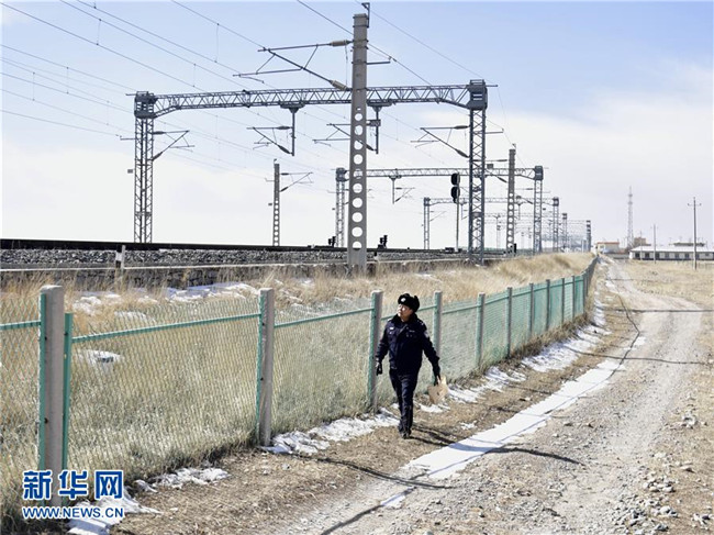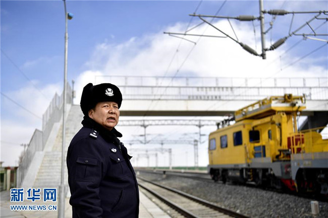 今年53歲的王建康是青藏鐵路公安局西寧公安處哈爾蓋派出所剛察車站警務(wù)區(qū)唯一的值班民警。他工作的剛察車站警務(wù)區(qū)位于青海省海北藏族自治州剛察縣,平均海拔在3300米以上。剛察站小,每天只有7581/7582次西寧往返格爾木的兩趟慢車經(jīng)過,只有王健康一名常駐民警,他一個人要負(fù)責(zé)接車、安檢、身份比對、線路巡查等工作。除了繁瑣的日常工作,對王建康而言,更大的挑戰(zhàn)是孤獨(dú)。一個人做飯,一個人燒鍋爐、一個人接車,一個人巡線,“最久的一次,我有三個星期沒跟人聊過天。”王建康說。盡管如此,他仍無怨無悔地堅守在崗位,為旅客服務(wù)著。新華社發(fā)(張龍攝)