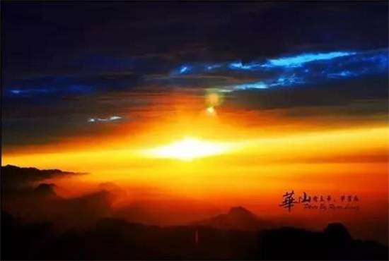 在華山,你看到的太陽不是如海平面上一躍而出,更不是像在其他山峰那樣冉冉升起。在華山這個武俠名山面前,太陽竟是以一種近乎膽怯的動作,偷窺一般緩緩探出一線,然后又把自己籠進云層后躲藏起來,當人們千呼萬喚許久,這才伸出頭來,此時,華山東峰的仙掌倚天壁立,早已在旁守候多時了。