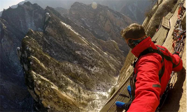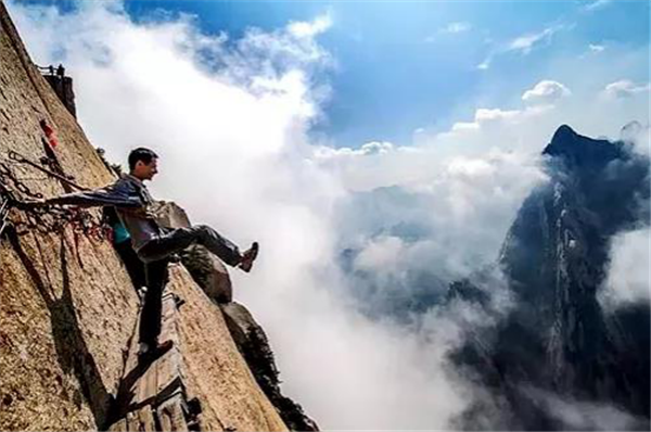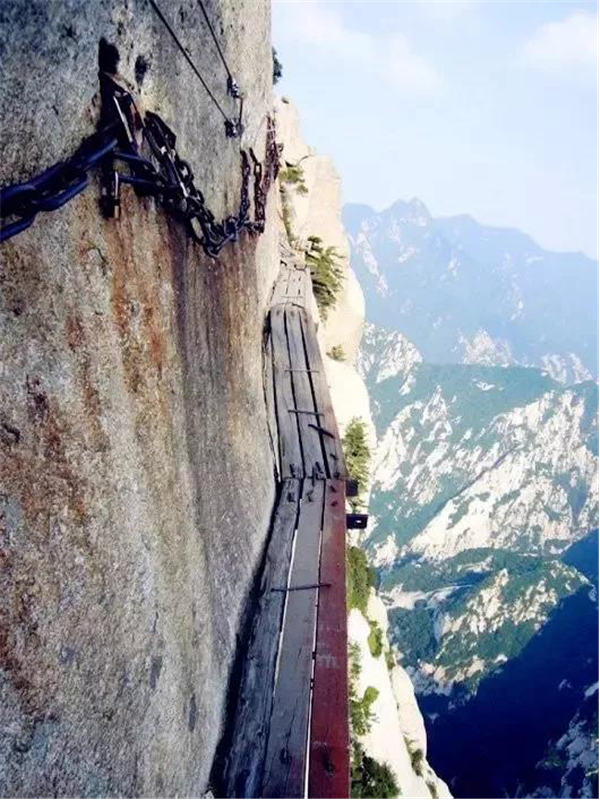 我站在華山兩塊窄窄的木板上,依靠鐵釘楔入巖石作為支撐,我的腳下,是1000米的深谷,冰雪的路面很滑。我來華山旅游純粹是因為在互聯(lián)網(wǎng)上瘋傳的一張圖片,也就是指“世界上最危險的登山路”那張。現(xiàn)在有了安全保護措施,實際上用不著擔(dān)心危險了??謶致可闲念^,頭腦變得有些麻木。西安是中國的古城,在強盛朝代時期占有重要的歷史地位。