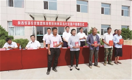 恒源集團(tuán)精準(zhǔn)幫扶納林采當(dāng)村貧困戶捐贈(zèng)儀式現(xiàn)場(chǎng)