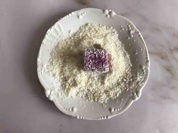 11.將做好的紫薯泥倒入碗中,抹平,入冰箱冷藏2小時