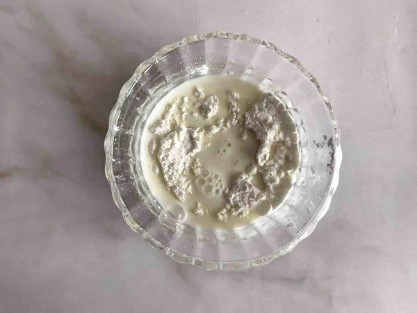 3.玉米淀粉中加入50克牛奶攪拌均勻備用