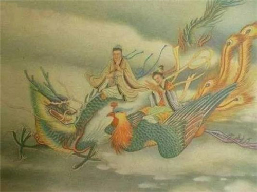 《吹蕭引鳳》相傳春秋時代,秦穆公的女兒弄玉,吹簫非常好聽。有天夜里弄玉夢見一位英俊的少年騎著彩鳳從云中飛來,他說:“我是從華山來的。”少年吹著簫,那只彩鳳也隨著悅耳的音樂翩翩起舞。