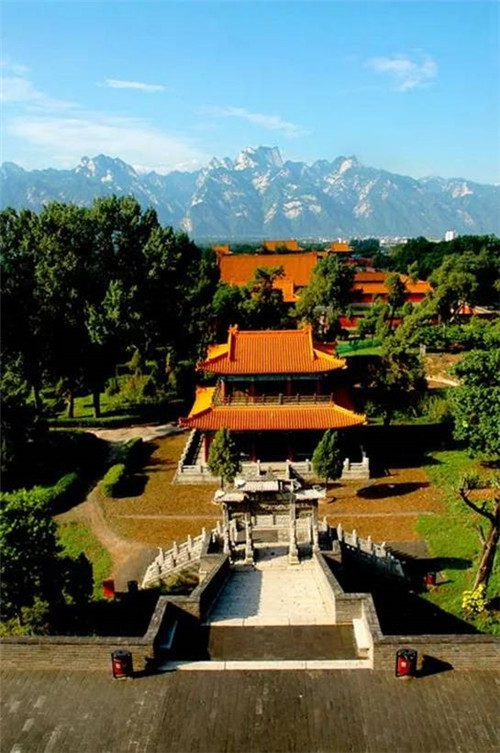 西岳廟是供奉西岳大帝華山神的廟宇,廟始建于漢武帝時代,后成為歷代帝王祭祀華山神的場所。西岳廟坐北朝南,廟門正對華山。在由北至南的中軸線上依次排列著灝靈門、五鳳樓、欞星門、金城門、灝靈殿、寢宮、御書樓、萬壽閣。整個建筑呈現(xiàn)前低后高的格局。西岳廟建筑相當(dāng)宏偉。五鳳樓建于高臺上,高達(dá)20多米,登樓望華山,五峰歷歷在目。正殿灝靈殿建筑為琉璃瓦單檐歇山頂,坐落于寬廣的“凸”字型月臺之上,面寬7間,進深5間,周圍有回廊,氣勢宏偉,歷代帝王祭祀華山多住于此。殿內(nèi)懸掛有康熙、道光、慈禧所題“金天昭端”、“仙云”等匾額。整個院落林木繁茂,山石嶙峋,饒有園林之趣。