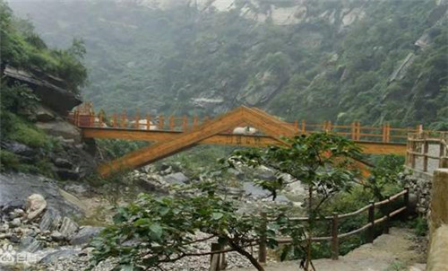 第二游:仙峪(仙峪,又名車箱谷,在華山峪西,與華山峪僅一嶺之隔,傳說古時黃初平、黃初起弟兄在此牧羊成仙,因而得名。仙峪深五十余里,峪道窄狹清幽,山路崎嶇蜿蜒,河流湍急,山石險峻,多處路段鑿崖,加棧凌空通過。進峪五里處,有斜嶺橫阻,令人有谷盡路絕之感,然越嶺橫度,又平添柳暗花明的情趣)。