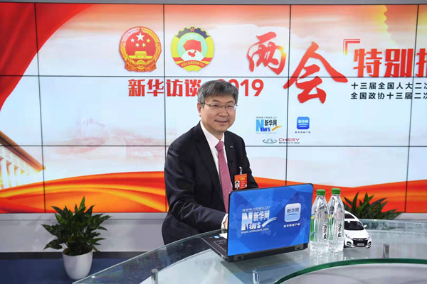 全國人大代表、奇瑞汽車股份有限公司黨委書記、董事長尹同躍,3月6日做客新華網(wǎng)2019全國兩會(huì)特別報(bào)道。新華網(wǎng) 李相博 攝