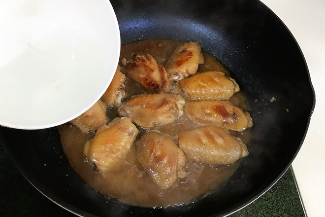8.加入與雞翅齊平的開(kāi)水,稍攪動(dòng)均勻。