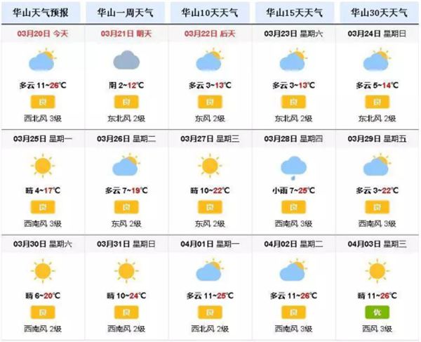 三月華山天氣預(yù)報(bào)