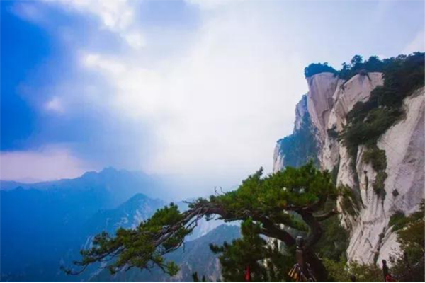 古人云:“山無石不奇,無純石不大奇”。華山奇石當屬“大奇”,雄奇瑰麗,風姿獨具,能令天下人“一見換神骨”。唐詩人孟郊《游華山云臺觀》詩贊華山是“華岳獨靈異,草木恒新鮮。山盡五色石,水無一色泉”。華山的主體是由一塊純粹完整的巨型花崗巖構(gòu)成,呈柱體狀,巍然屹立,四方如削,峭陡挺拔,高聳云天。正如朱德詩中所說“華山直挺黃河邊,雄視東方函谷關(guān)”,大石大奇的壯觀氣勢可謂舉世獨具。其次,它的三座主峰合攏相擁而形成的蓮花狀山勢,也是“石之大奇”的展現(xiàn)。前人說三峰“一石以為莖,二峰以為葉”,形象地狀摹出了華山三峰形似蓮花的狀態(tài)和高表云天,怒放群山的博大與宏偉。另外,由于地殼的裂變斷震,許多似人似物的象形奇石散落于景區(qū)各處,形成了獨具特色,饒有興趣的奇石景觀,而且這些奇石大多都伴隨著一個神奇而美麗的傳說故事,更增添了這類景觀的生動趣味和神秘色彩??梢哉f,華山之石,無石不奇。