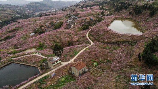 3月21日,桃花在成都龍泉驛區(qū)龍泉山盛開(無人機拍攝)。每年三月,有“桃花故里”之稱的四川省成都市龍泉驛區(qū)一片粉紅,數萬畝桃花如醉霞緋云般競相綻放,令人流連忘返。 新華社記者 張玉薇 攝